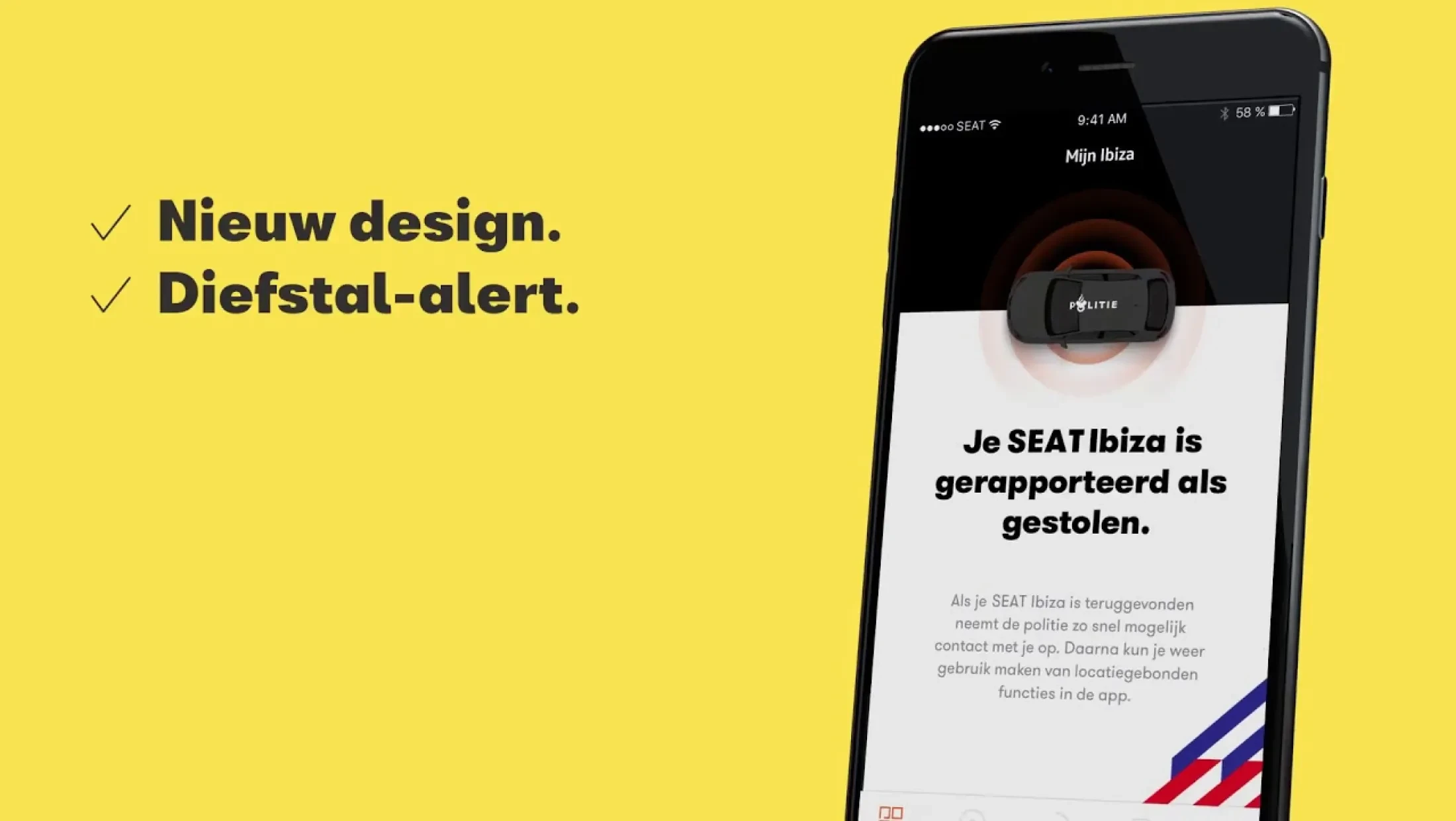 Je SEAT gestolen? Met de app kun je nu direct een gestolen voertuig rapporteren bij de politie. Via de app geef je ze toestemming om het voertuig realtime te traceren. Zo wordt het terugvinden van een gestolen voertuig een stuk makkelijker.